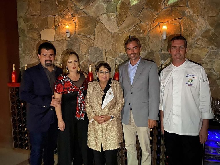 Gustavo Ortega, Gina Estrada, Lolita López Lira y Phillipe Bourrat. Con burbujas se celebró el 7o. Aniversario de la Vinícola