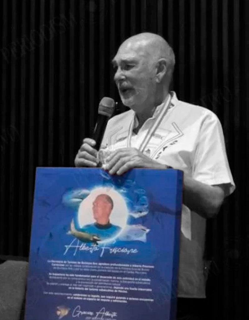 Por esto último, el Club de Exploraciones y Deportes Acuáticos de México (CEDAM), fundado en 1968 por ROMÁN RIVERA TORRES, también otorgó a ALBERTO FRISCIONE un reconocimiento por su trayectoria en exploración y arqueología subacuática.